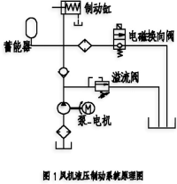 風(fēng)輪的轉(zhuǎn)速隨著風(fēng)速的變化而變化,假如沒(méi)有可靠的安全制動(dòng)裝置,隨著風(fēng)速的增大,將會(huì)使風(fēng)輪的超速造成風(fēng)機(jī)的損壞。安全液壓制動(dòng)系統(tǒng)在保證風(fēng)力發(fā)電機(jī)組的正常發(fā)電、防止事故發(fā)生、對(duì)風(fēng)機(jī)啟動(dòng)和停機(jī)控制起到